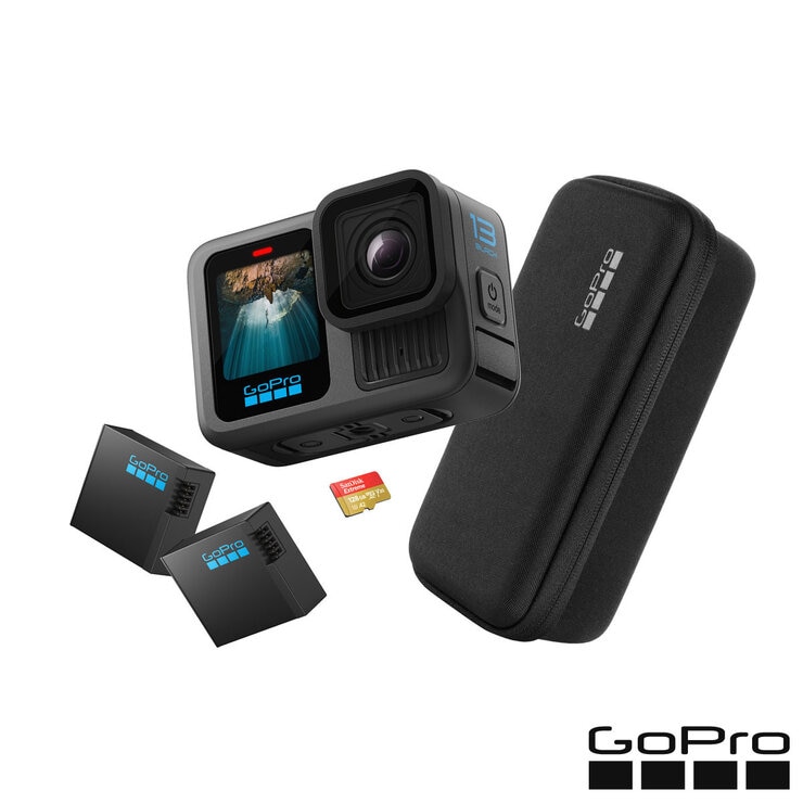 This bundle includes our best camera yet—HERO13 Black—plus, an extra Enduro battery, an extra Curved Adhesive Mount, a 128-GB SD card and a case. In addition to best-in-class 5.3K60 video and legendary durability, HERO13 Black is compatible with the HB-Series Lenses1 for even more immersive POV shots, the ability to focus closer than ever, motion blur using neutral density filters and anamorphic footage. Its more powerful Enduro battery extends recording time, while an updated mounting system gives you more mounting options than any GoPro before it. And with HyperSmooth 6.0 video stabilisation and automatic highlight videos,2 there’s no limit to your creativity