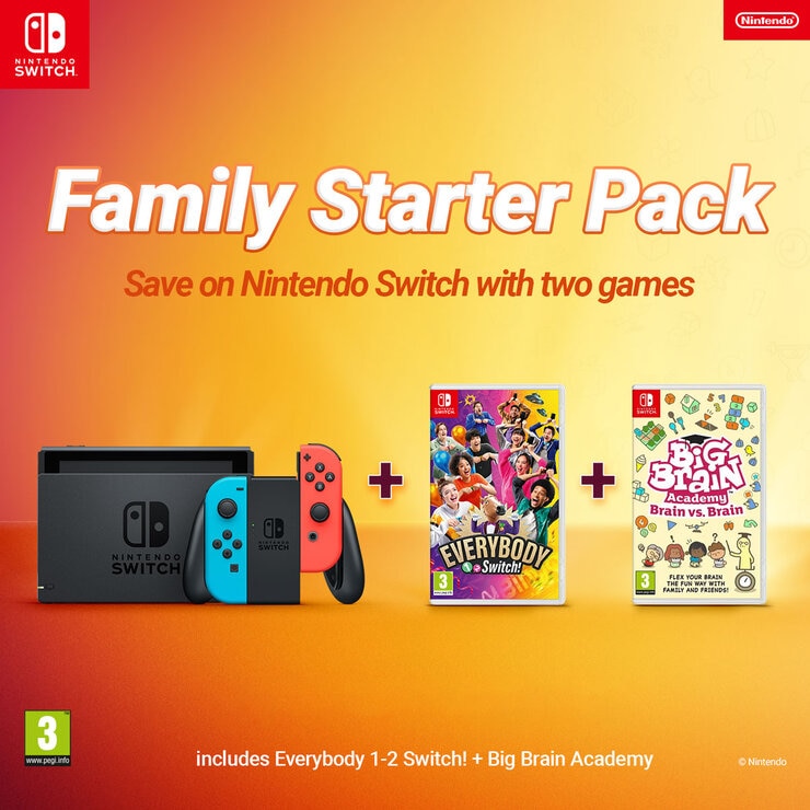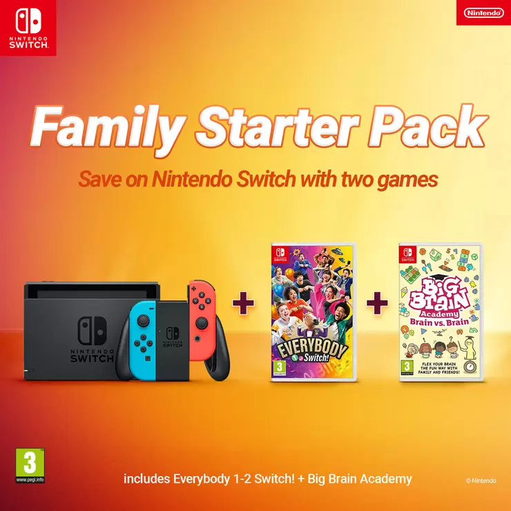 Nintendo Switch Neon Console with Big Brain Academy and Everybody 1-2 Switch Games