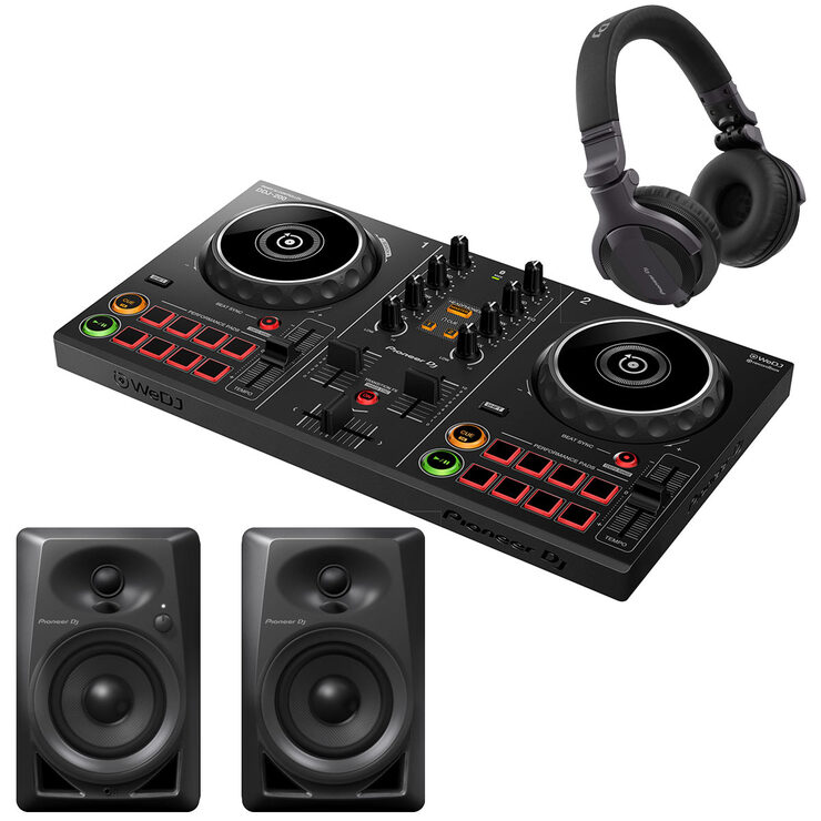 Pioneer DJ Bundle, DDJ 200 Controller, 2 x DM40 Speaker and HDJ-CUE1 Headphones