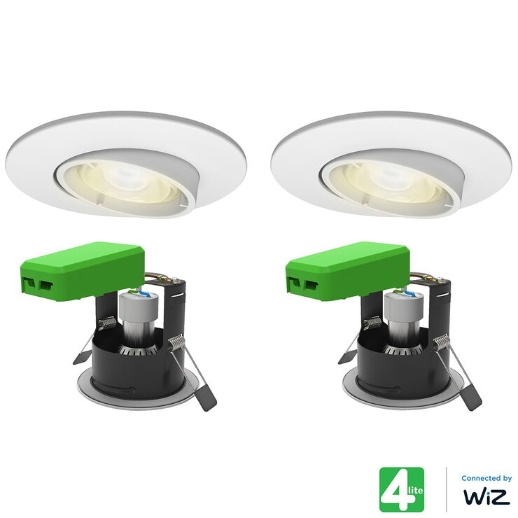 4lite WiZ Smart LED IP20 Fire Rated GU10 Adjustable Downlight WiFi & Bluetooth allows you to control your light wirelessly and remotely with the WiZ app. Alexa, Google Assistant, Apple Siri, Samsung Smartthings, IFTTT compatible plus many more!
