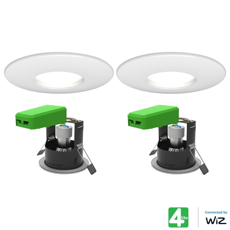 4lite WiZ Connected LED IP20 Fire Rated Downlight, Pack of 2, in Matt White