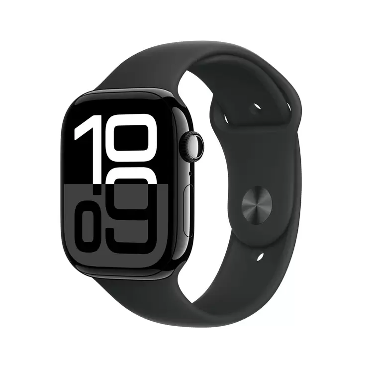 Apple Watch Series 10 GPS, 46mm Jet Black Aluminium Case with Black Sport Band S/M, MWWP3QA/A