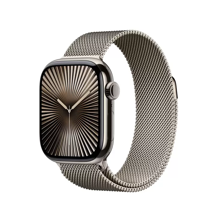 Apple Watch Series 10 GPS + Cellular, 42mm Natural Titanium Case with Natural Milanese Loop, MWXF3QA/A