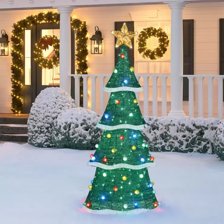 Add a traditional feel to your Christmas decor with this festive Christmas tree decorated with multi colour LED spheres topped with a star. Beautifully illuminated with 220 LED lights and a steady on function, this tree will light up your outdoor and indoor space and exude a festive feel to your environment.
