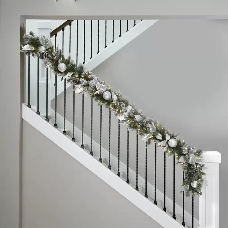 9ft (274.3 cm) Pre-Lit Garland With Plug In Lights in Silver