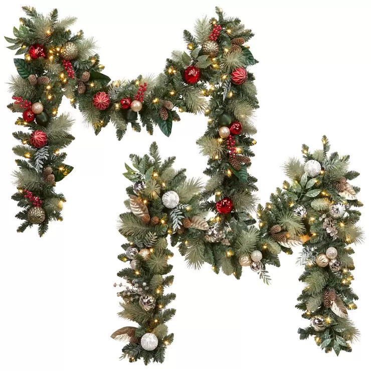 9ft (2.7m) Pre-Lit Decorated Garland Assortment