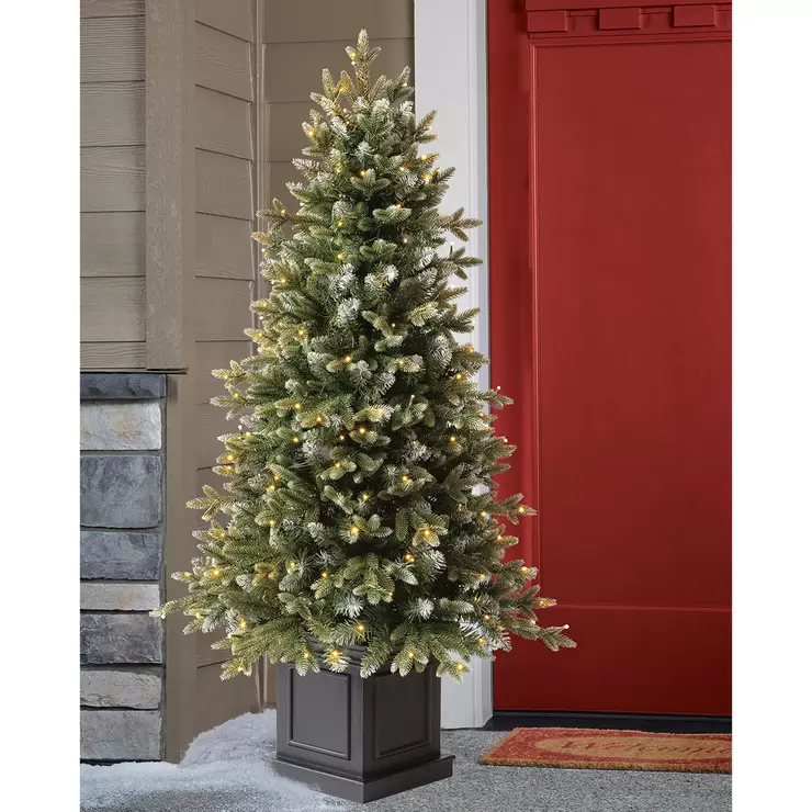 Choose your perfect size tree with this 4ft 6 Inches Pre-Lit Potted Aspen Artificial Christmas Tree. This premium and realistic artificial Christmas tree features colour changing radiant micro LED lights. With 1,099 Simple Shape™ branch tips and hinged branches for easy set-up this tree will instantly spring into shape.This life-like tree also has 5 different lighting effects, conveniently controlled by a radio frequency remote controller. The frosted and glittery branch tips will add a splash of vibrancy to your festive décor, making it perfect for welcoming guests this Christmas.