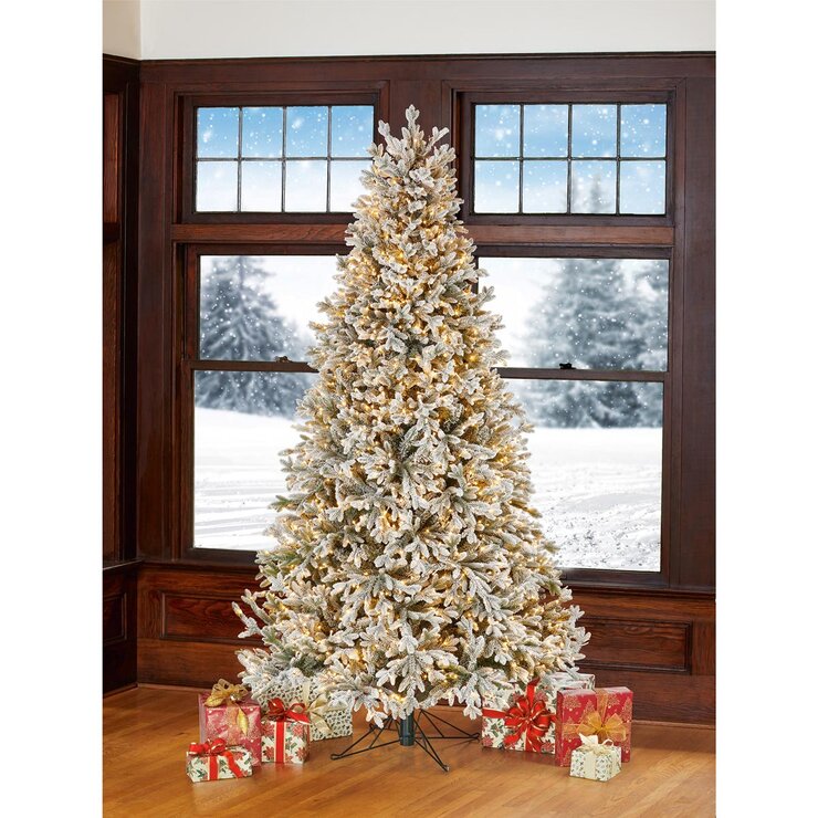 7.5ft (2.2m) Pre-Lit Flocked Aspen Artificial Christmas Tree with 1,850 Colour Changing Micro LED Lights
