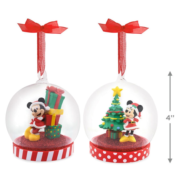 4 Inch (12.3cm) Disney Mickey & Minnie Snow Globe Christmas Tree Ornaments - 2 Pack