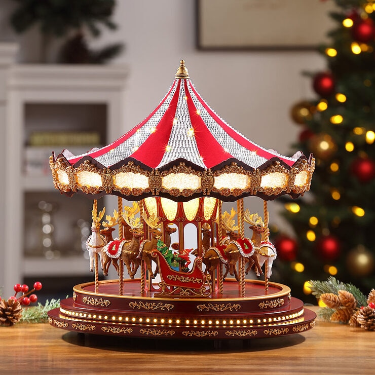 17 Inch (44cm) Deluxe Christmas Carousel Table Top Ornament with LED Lights & Sounds