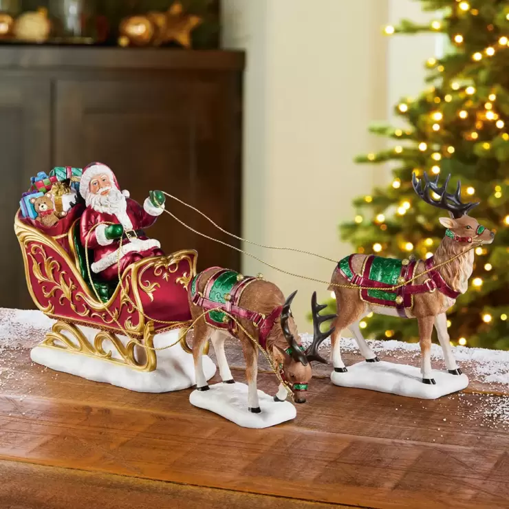 - Tabletop Santa Sleigh and Reindeer Christmas Decoration