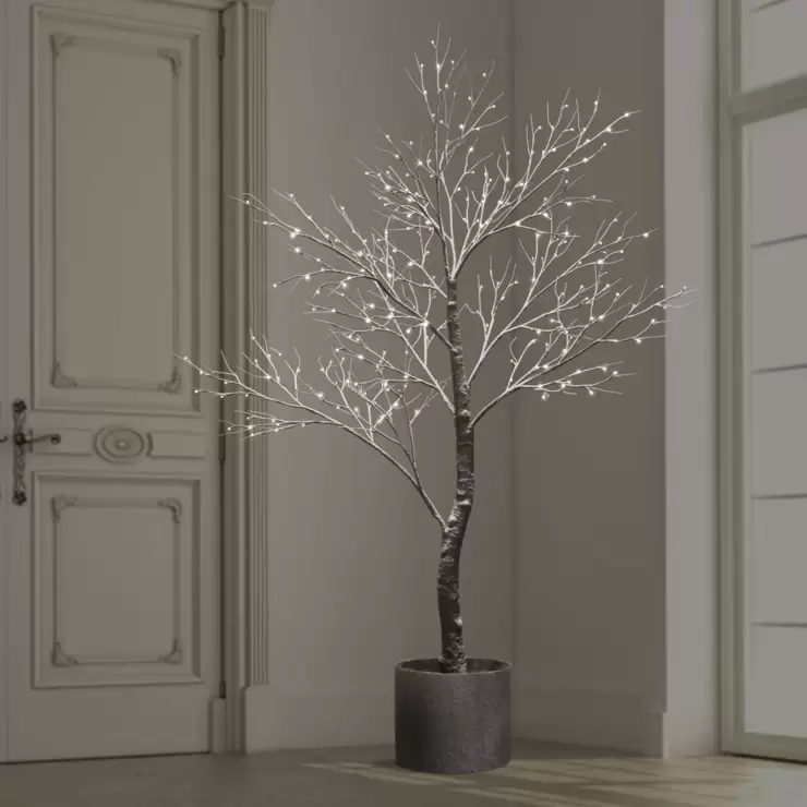 LED 7ft (2.1m) Indoor / Outdoor Selectable Twinkle Potted Brown Flocked Tree with LED Lights