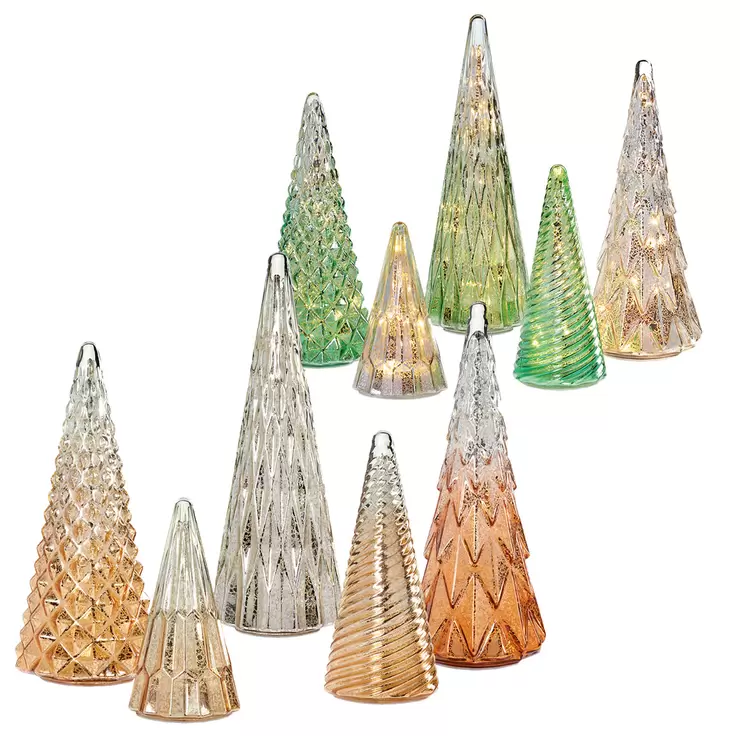 Set of 5 Glass Trees with LED Lights in Gold or Green