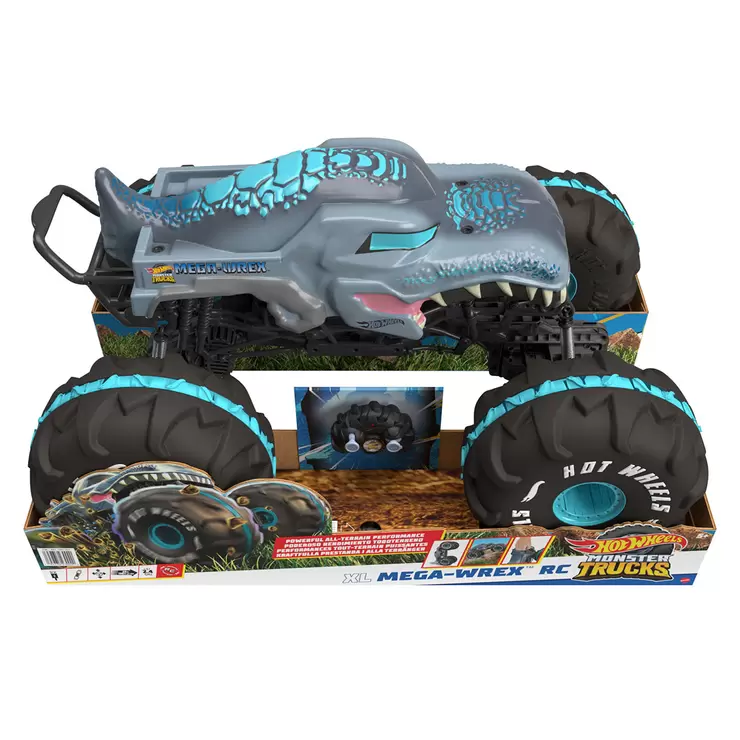 - Dominate the competition with the extra-large Hot Wheels Monster Truck RC 1:6th Mega-Wrex!