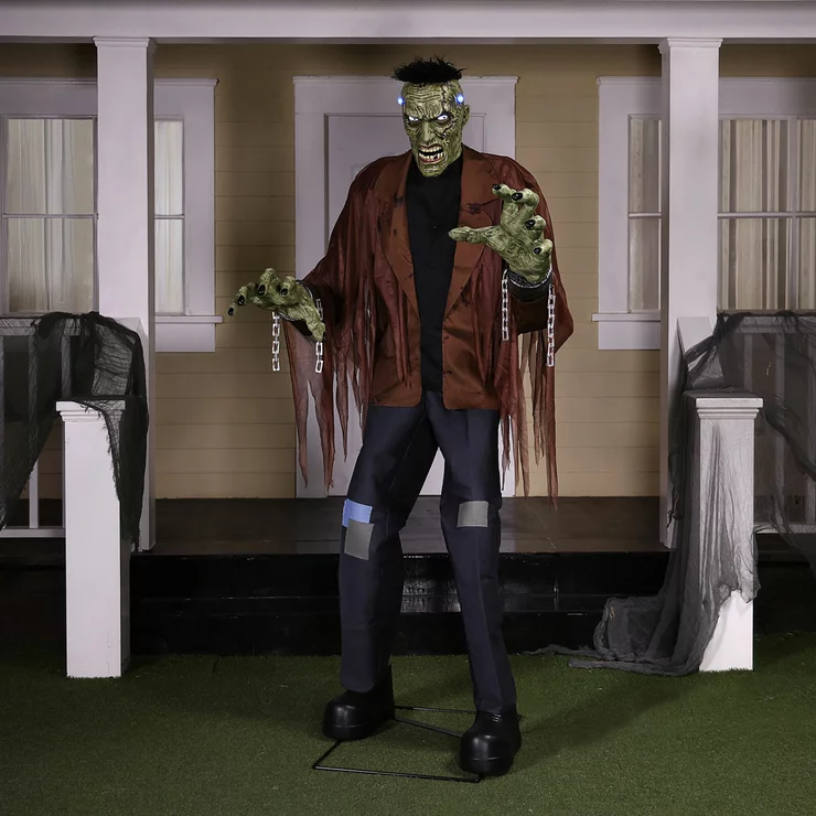 With IR Sensor Motion-Activated Lights, Sound and Motion this animated Monster is a great addtion to your Halloween decor. His moving mouth syncs with Monster audio & his eyes blink and look around. His arms also raise up and lower, along with the flickering electrodes on Head hes sur eto scare any passer by.