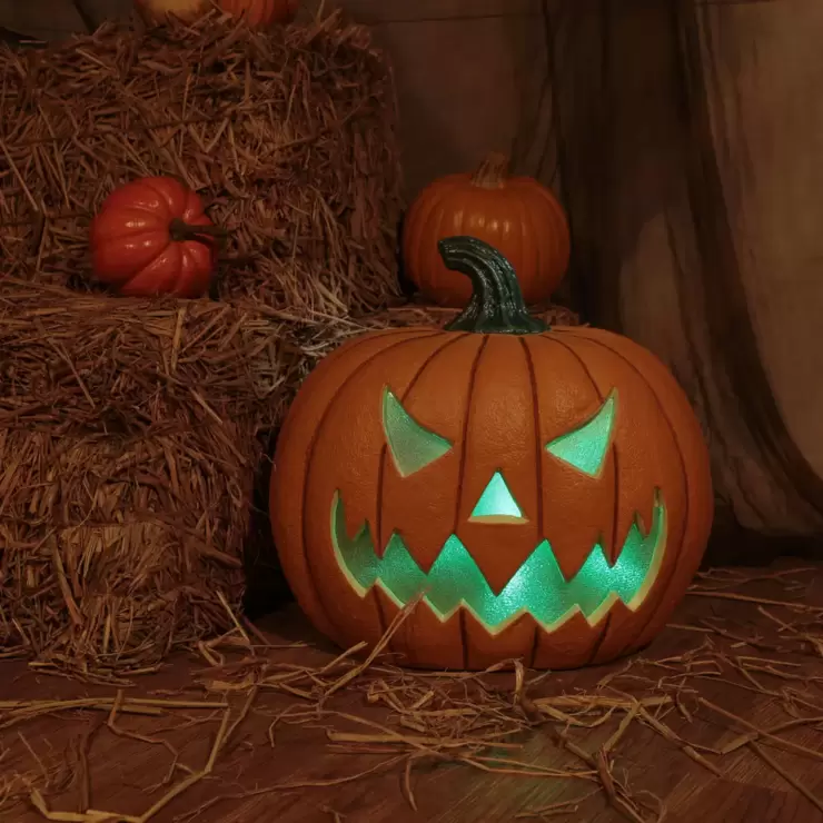 Halloween 17 Inches (44.4cm) Squatty Jack O Lantern Pumpkin With LED Flickering Lights & SoundsHalloween 17 Inches (44.4cm) Squatty Jack O Lantern Pumpkin With LED Flickering Lights & Sounds