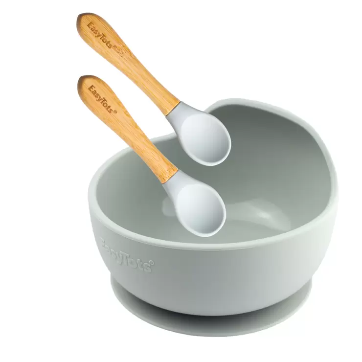 EasyTots Suction Bowl with Bamboo Spoons - Grey