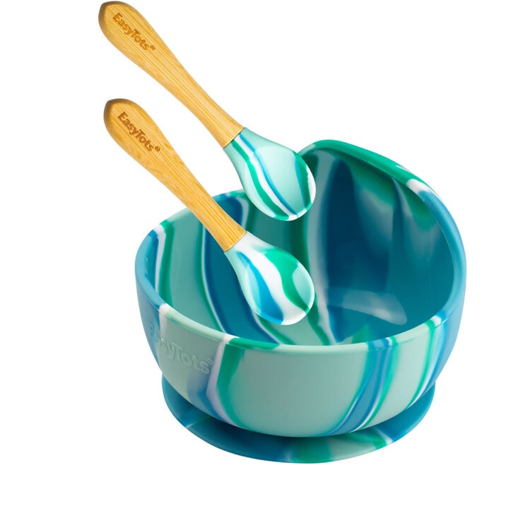 EasyTots Suction Bowl with Bamboo Spoons - Ocean