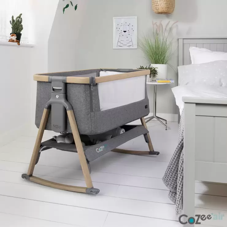 Tutti Bambini CoZee Air Bedside Rocking Crib, Oak & Charcoal