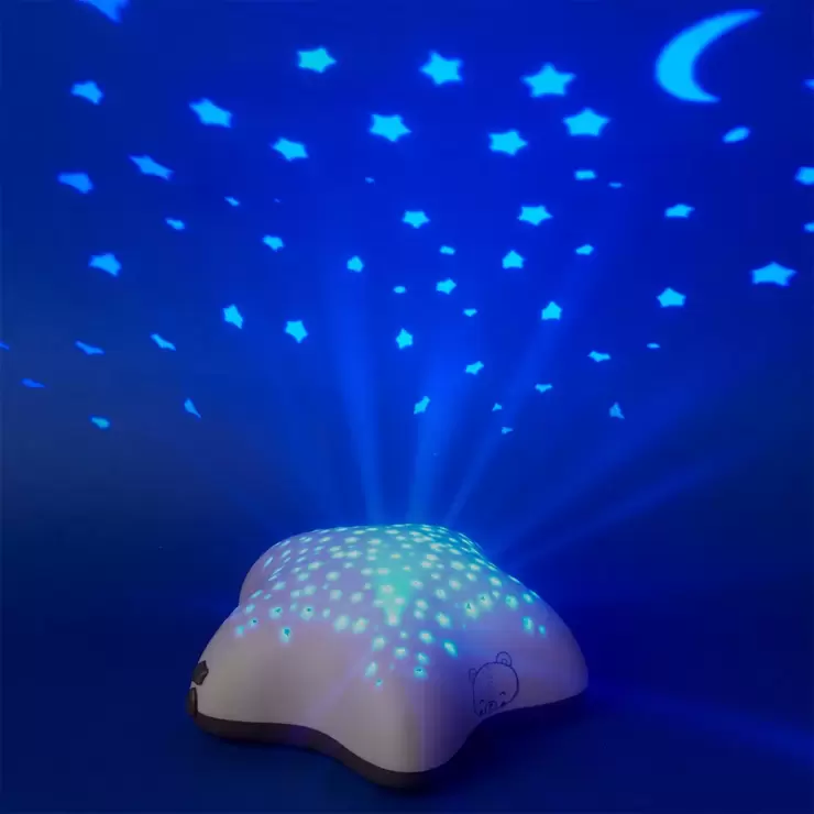 - Soothing: Projects a pretty starry sky with changing colors on the bedroom ceiling (or choose between blue, green, or orange projections)