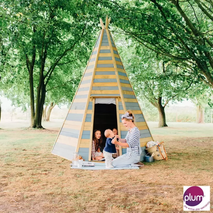 The Plum Grand Wooden Teepee Hideaway is a little garden haven for den lovers. Who will you be and where will you go today? The Plum Teepee range encourage active and imaginative ways to play.