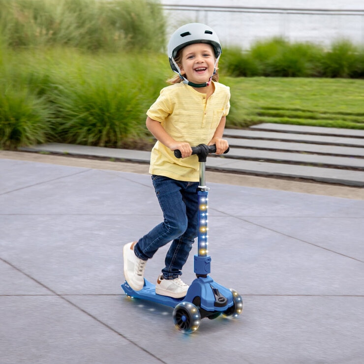 - All day play: LED lights integrated in the stem and deck, along with LED light-up wheels, provide extra visibility and improve safety