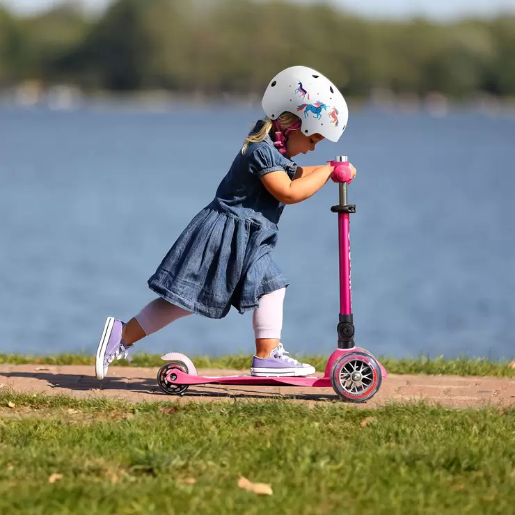 Micro Mini Foldable Pink Scooter with Unicorn Helmet and Pink Bell (2+ Years)