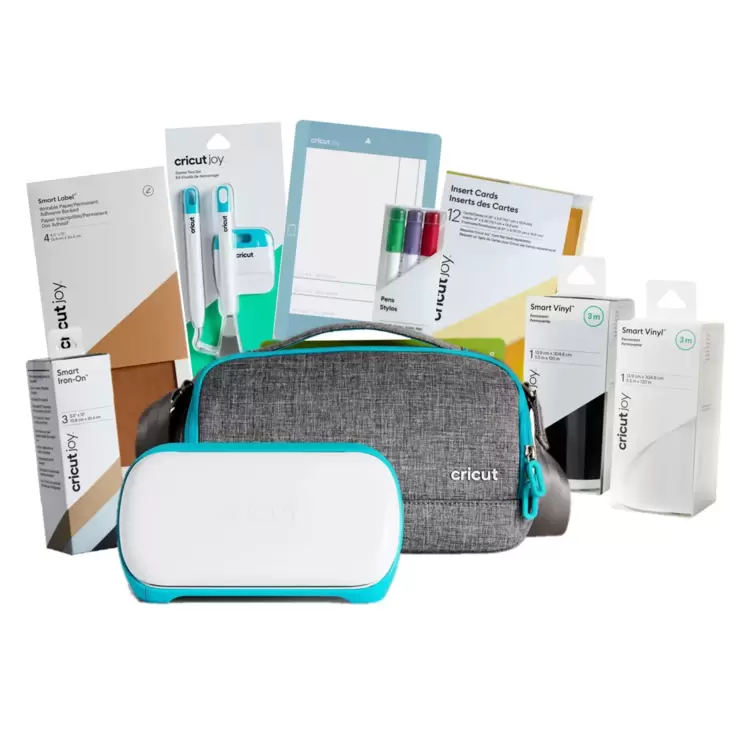 Includes: Cricut Joy, Carry Case, Tool Set, Card Mat, Pack of Insert Cards, 3 x Fine Point Pens , Smart Iron-On, Smart Labels, 2 x 120” Smart Vinyl (Colours may differ from image)