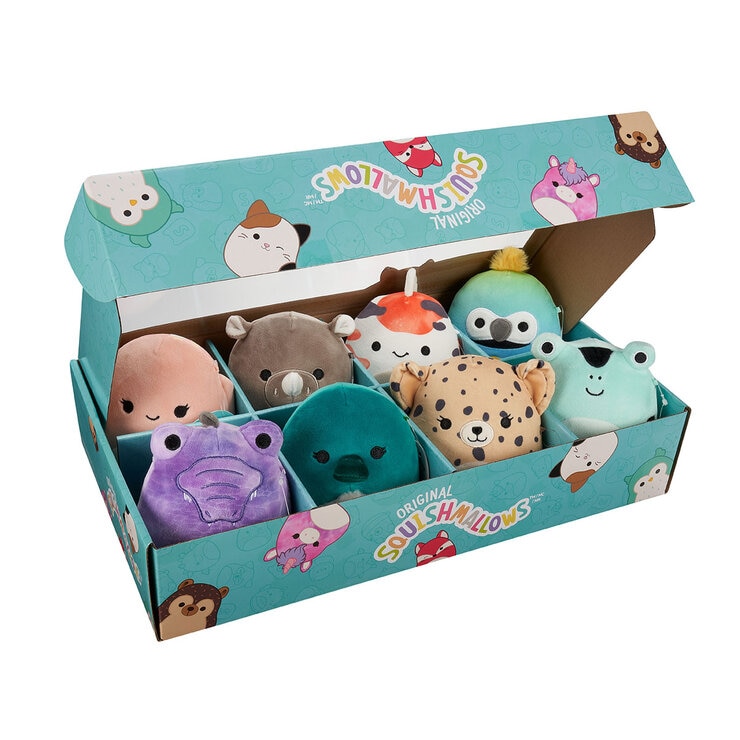 The Squishmallows 4.5 inch 8 pack are the softest, cuddliest and most huggable soft toys around. Now available in a fun assortment of 8, perfect for sharing with friends and gifting.