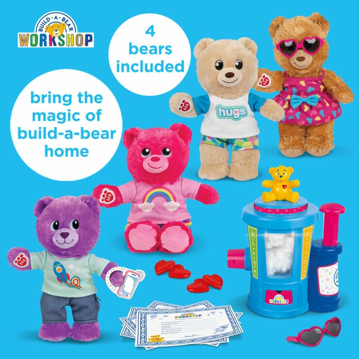 - Includes 4 unstuffed bears (pink, purple, and 2 classics)