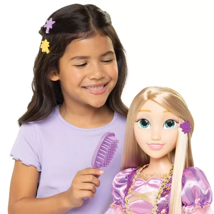 - WEAR & SHARE HAIR ACCESSORIES: Style Rapunzel’s long, flowing hair, or your own - using the included brush and floral clips.