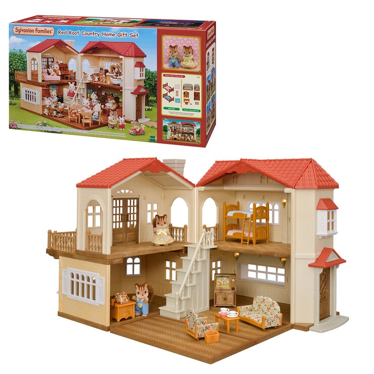 The Red Roof Country Home is a large classic house with four large rooms, three working lights and multiple configurations of the rooms to choose from. The gift set includes Walnut Squirrel boy & girl figures along with a bunk bed, country living room furniture set and accessories.