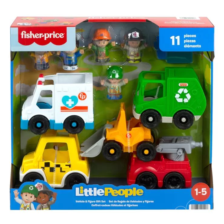 The City Helpers set allows toddlers to create their own roll-along adventures with these Little People® vehicle set and find a way to save the day! This set includes 5 vehichles and 5 figures. The push-along toy vehicles sized just right for small hands to grasp and move as kids act out their own fun stories.