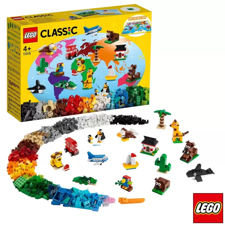 - Introduce kids to some of the world’s most iconic animals and objects with this LEGO® Classic Around the World (11015) playset, including 15 inspiring model ideas for kids aged 4 and up.
