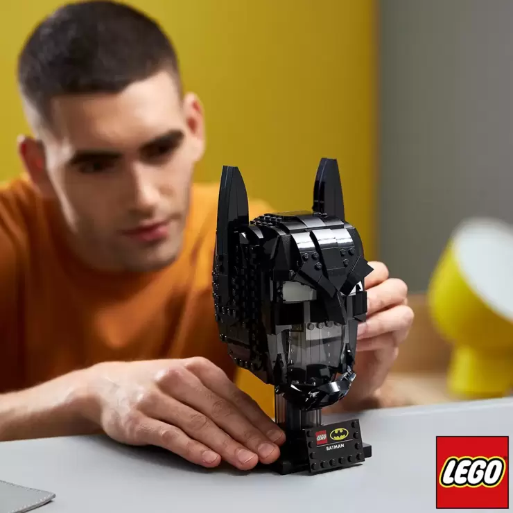 - This authentic LEGO® brick recreation of the iconic Batman™ helmet includes transparent pieces to represent the face and a stylish fact plaque attached to a sturdy base.