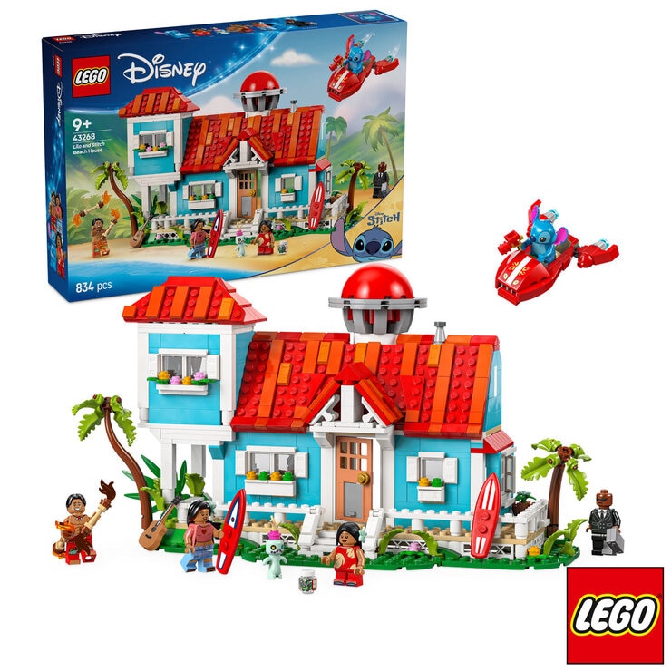 Amazing adventures await fans and kids in this LEGO Disney Lilo and Stitch Beach House (43268) building toy for 9+ year old girls and boys. Featuring a 2-level beach house model, this cool building set has lots of film details and Easter eggs, including 2 surfboards, Lilo’s doll Scrump, a record player, pickle jar, a brick-built spaceship, plus 5 LEGO Disney character minifigures – David, Lilo, Mr. Bubbles, Nani and Stitch – for endless fun play.