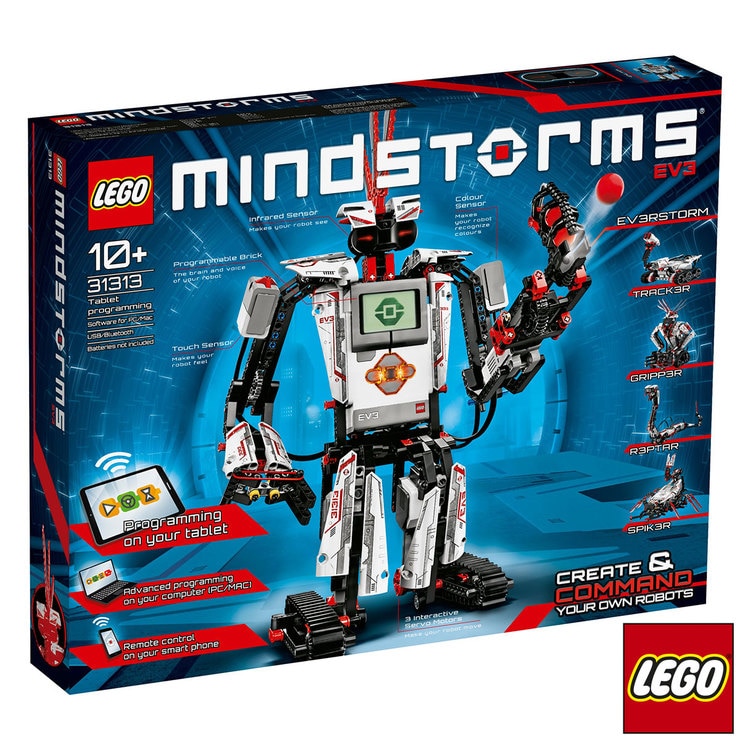 Combining the versatility of the LEGO® building system with the most advanced technology we've ever developed, LEGO MINDSTORMS® EV3 lets you unleash a world of walking, talking and thinking robots that do anything you can imagine. Complete a series of challenging missions using the intuitive icon-based EV3 Programmer App for tablet devices to build and program TRACK3R, R3PTAR, SPIK3R, EV3RSTORM and GRIPP3R, and then create your own programs. Take your robotics skills to the next level with the companion EV3 Software for PC and Mac, with its more advanced yet familiar programming interface. For instant control, download the free Robot Commander app for smart devices or use the infrared remote control included with each set. Create and command amazing LEGO® MINDSTORMS® EV3 robots with touch sensor, color sensor, infrared sensor and 550+ LEGO Technic elements. The LEGO MINDSTORMS EV3 robot revolution continues!
