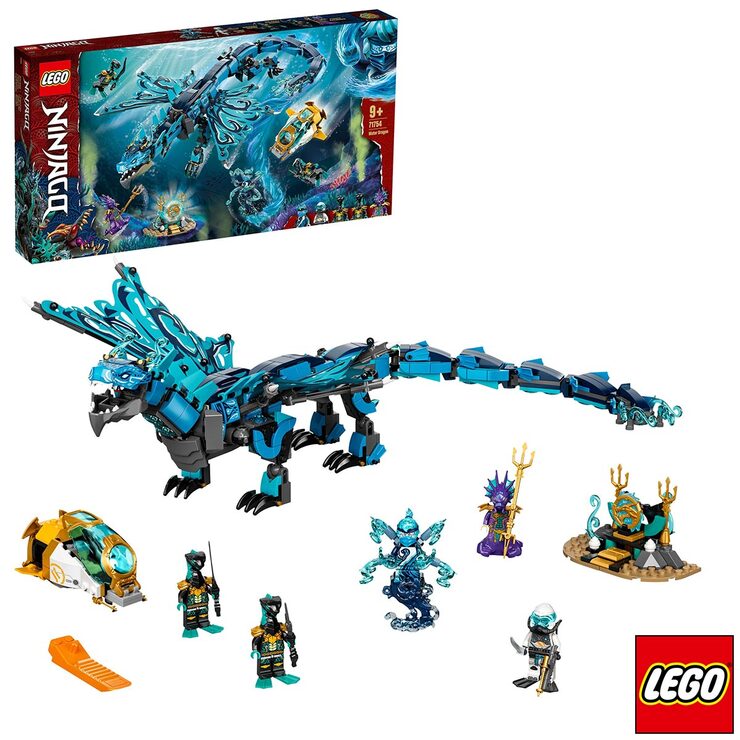 - LEGO® NINJAGO® Water Dragon (71754) playset featuring a highly posable dragon toy for ninja fans to recreate action from the NINJAGO: Seabound TV series for countless fun-filled hours.