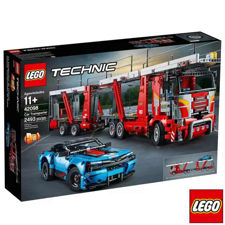 Introduce young LEGO® builders to the basics of engineering with this highly detailed LEGO Technic™ 42098 Car Transporter toy. This authentic replica model comes with a host of realistic features and functions for hours of play and design exploration. You can raise and lower the car decks and rear ramp for seamless navigation to the upper and lower levels, lock vehicles into position for safe transportation, and tilt the driver's cab to access a detailed V6 engine with moving pistons. This 2,493-piece building set also includes a blue car with working steering and V8 piston engine and is compatible in scale with the 42093 Chevrolet Corvette ZR1 (sold separately). It comes with a classic red, gray and black color scheme with stickers for additional detailing. Rebuild this 2-in-1 vehicle transporter to create the LEGO Technic Truck and Show Cars model.