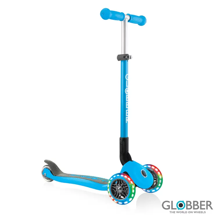 Globber Primo Foldable Lights Scooter in Sky Blue (3+ Years)