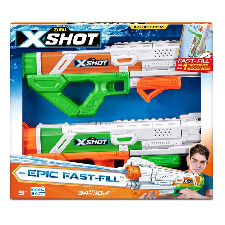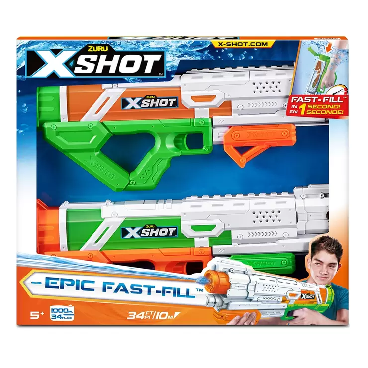 - Package Includes: 2x X-Shot Epic Fast Fill Blasters by ZURU.