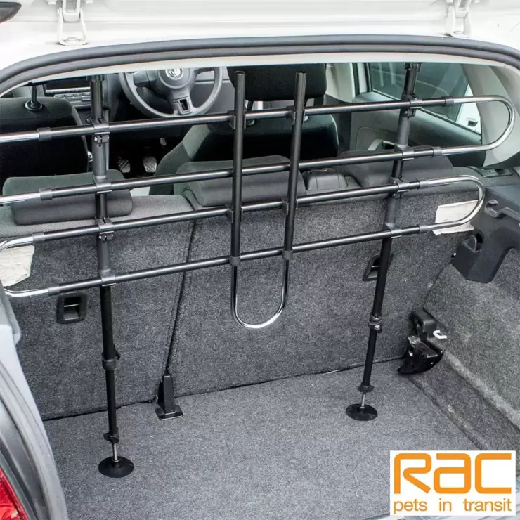 This handy cargo guard from RAC keeps dogs safely contained in the rear of the car. It helps to restrain the dog and reduce driver distraction.