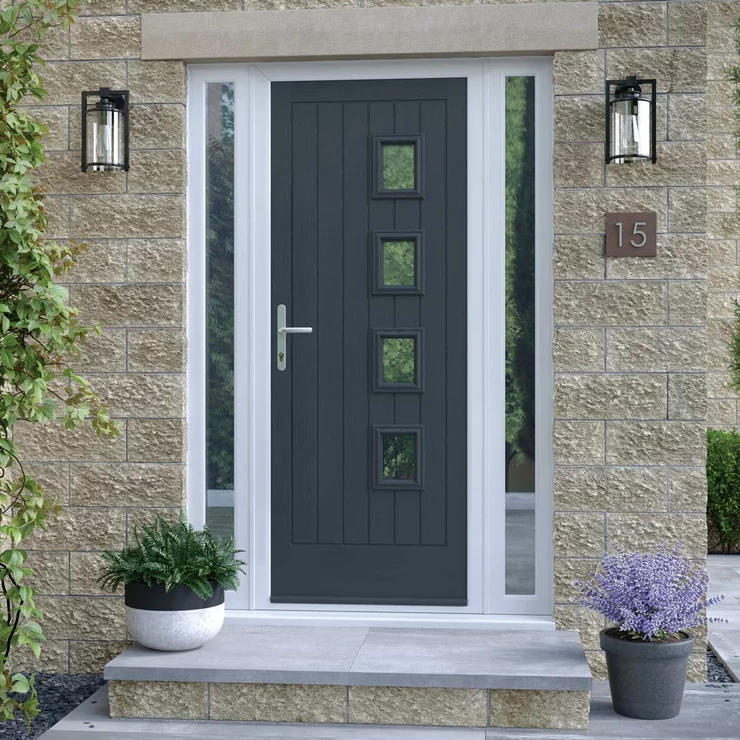 - High-performance GRP composite door with polyurethane foam core for excellent insulation