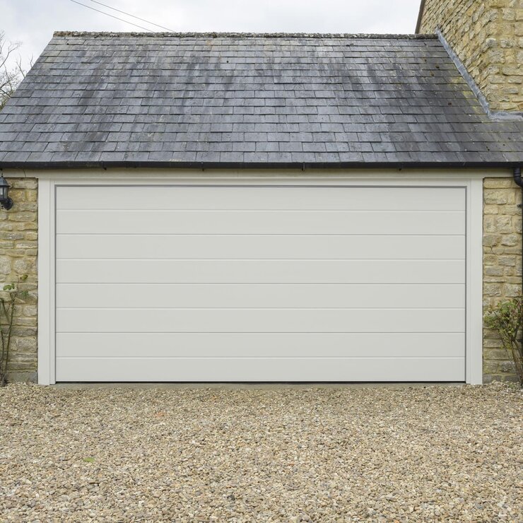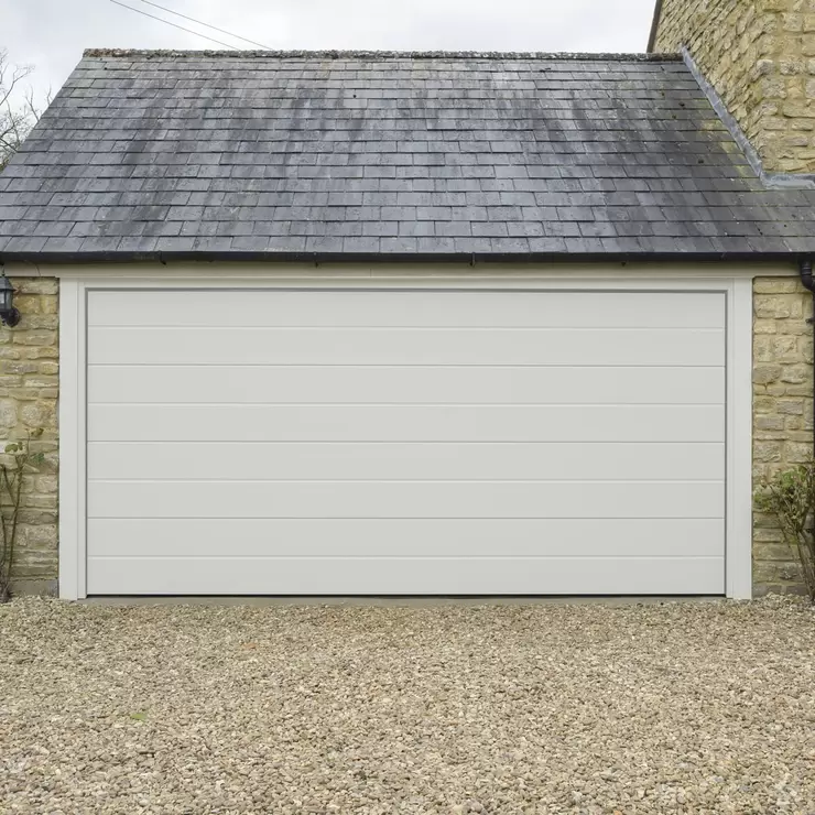 The Evo Thermalift sectional garage door with thermal break has significantly improved heat insulation value, up to 17%. This door opens vertically into the garage with no ‘kick out’ as it moves providing you with up to three feet of increased drive length compared to up and over garage doors. These doors are worth considering for situations where a garage is situated directly in front of a public footpath. If you own a vehicle with a large height clearance, such as a van, these doors will make it far easier to drive in and out of the garage.