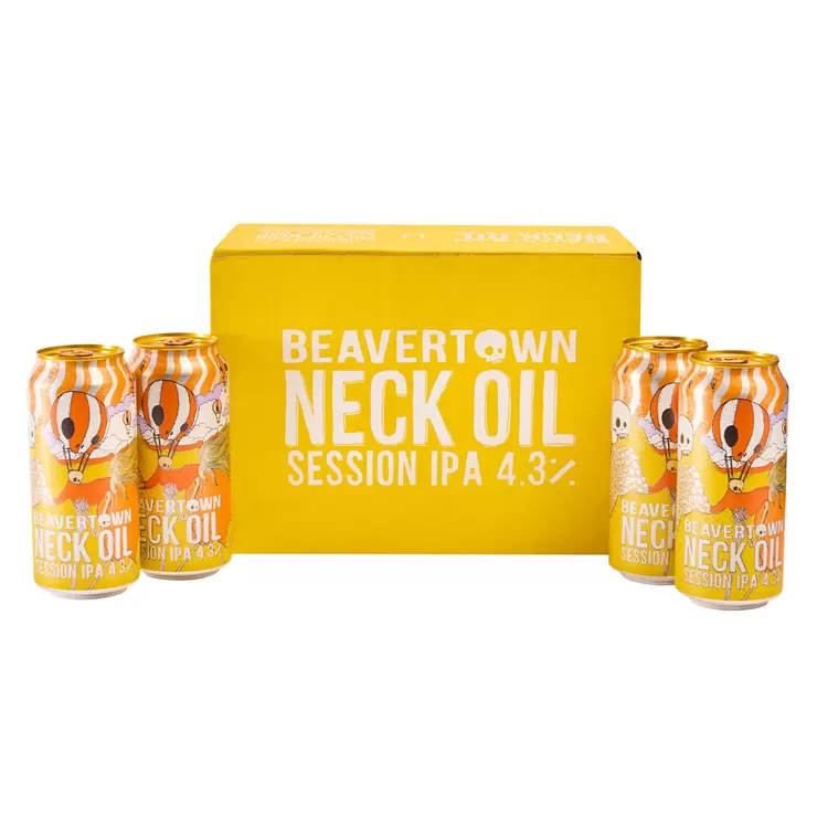 Beavertown Neck Oil has a refreshingly crisp taste of citrus and passionfruit with the perfect balance of hop flavours to deliver an out-of-this-world session IPA. Hops include Columbus, Centennial, Simcoe, Amarillo, Galaxy, Vic Secret and Mosaic. The name Neck Oil comes from Beavertown's founder Logan fondly remembering his grandad declaring he was off down the pub to 'oil his neck' with a pint.