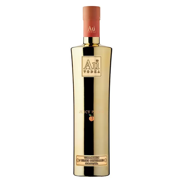This Ultra-Premium British Vodka is a combination of AU's award-winning recipe with the finest sweet juicy peaches, creating a shimmering summer sensation. Au Juicy Peach's refreshing taste is perfect over ice or paired with lemonade to add a fizz, truly encapsulating the taste of summer fruits. The five-times distilled vodka has been combined with the finest peaches to create a refreshing taste with a vibrant shimmering orange liquid.