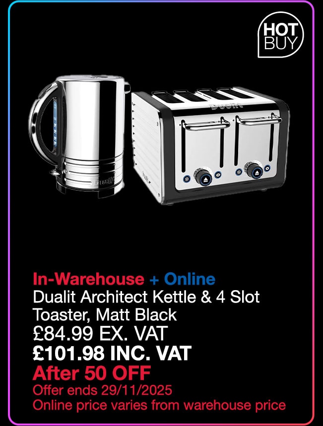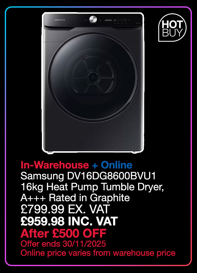 In-Warehouse Only Tefal Jamie Oliver Rotating Pizza Oven £99.99 EX. VAT £119.98 INC. VAT Offer ends 30/11/2025