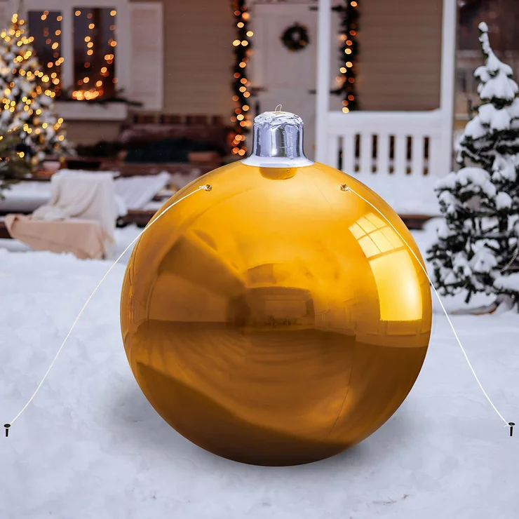 Make a bold statement this festive season with the Lumations 5ft Golden Gem Deco Ball—an inflatable giant Christmas ornament designed for both indoor and outdoor use. With a shiny finish and durable PVC construction, it’s easy to set up using the included electric air pump. Secured with ropes and stakes, this waterproof and cold-resistant décor piece brings oversized holiday charm to any space.