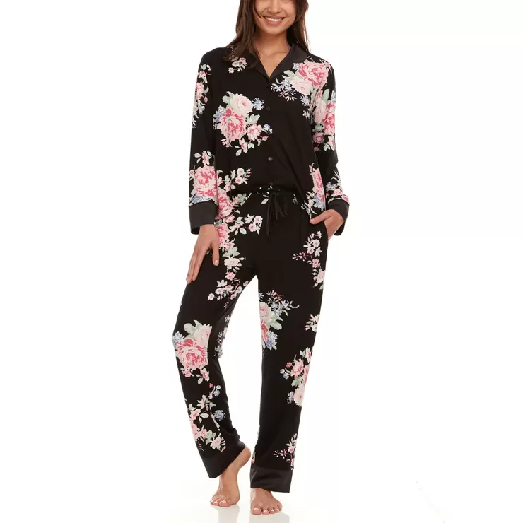 Flora Nikrooz Ladies Notch Collar Pyjama Set in Black