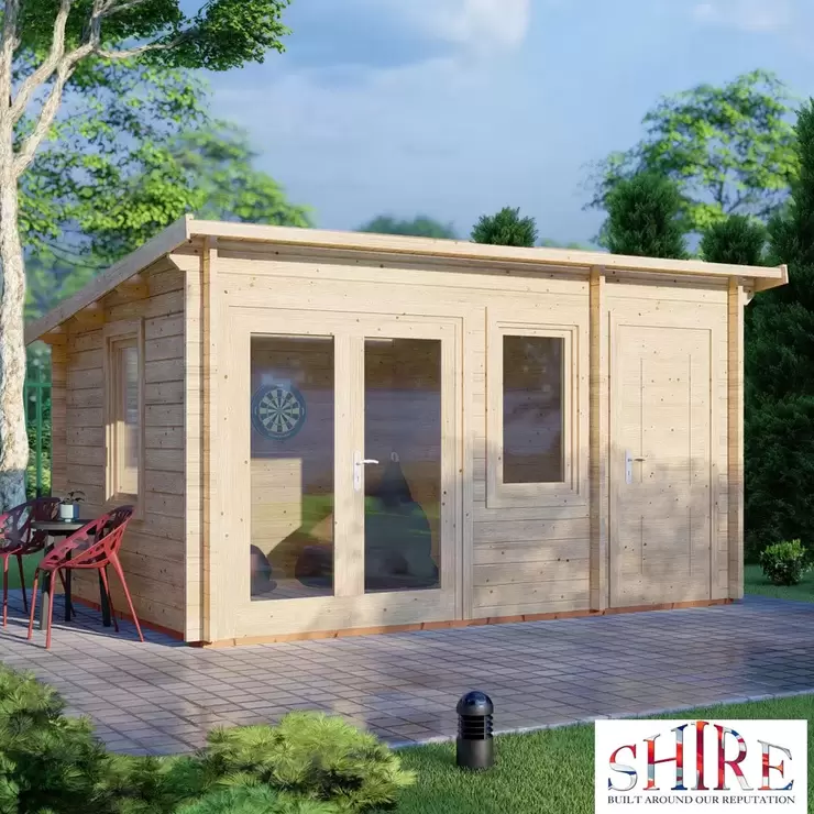 The Rydal is a contemporary style log cabin that features a light and airy living area with a handy side shed that can go either side of the building. The principal area is ideal for relaxing or working and its two, large opening windows and glazed doors provide lots of natural light. Toughened double glazing comes as standard.
